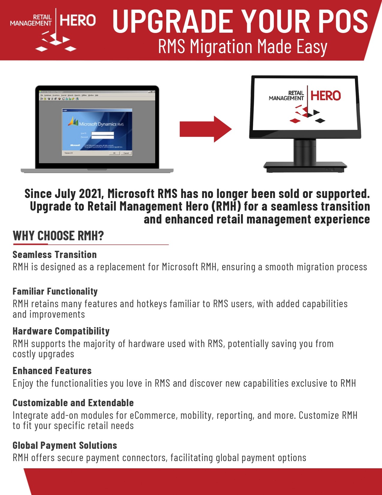 Deliver a customizable, hardware-agnostic, and payment-agnostic POS platform that adapts to your clients’ unique retail needs. RMH is built for modern retailers—whether they’re transitioning from legacy systems or scaling new locations.